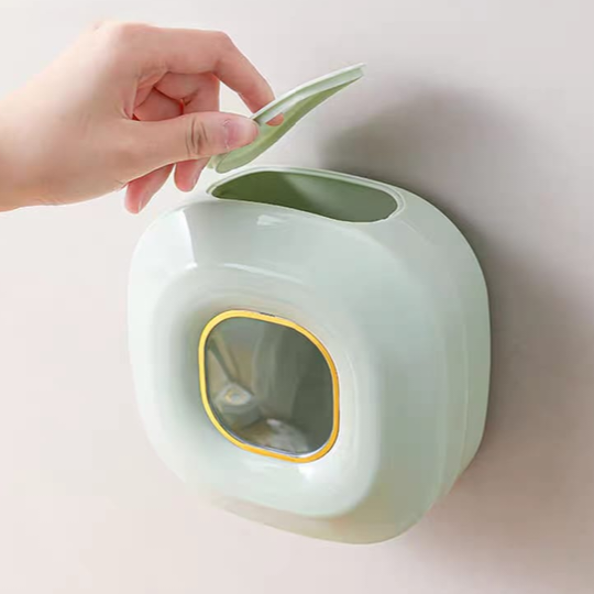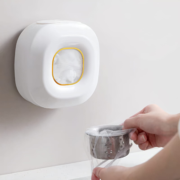 Sirve para guardar bolsas, cobertores transparente, guantes desechables u otros artículos similares.