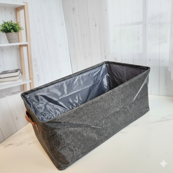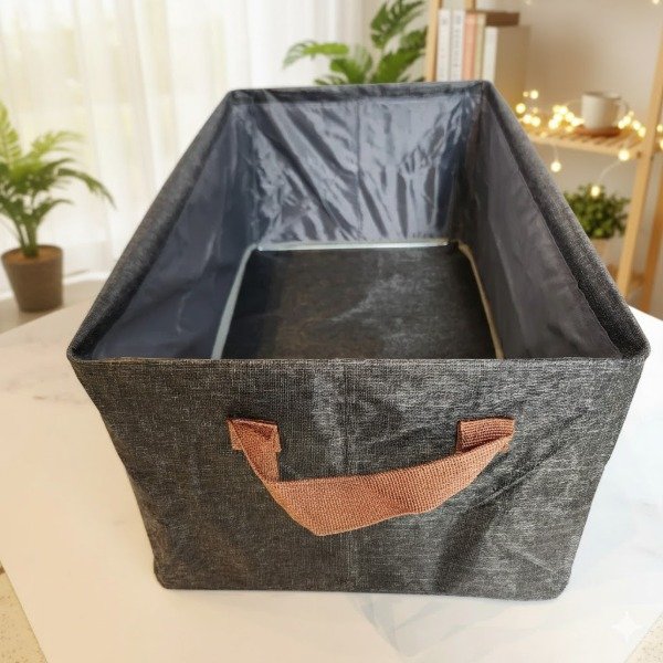 Descubrí el contenedor plegable con estructura de alambre, una solución elegante y práctica para mantener el orden en tu hogar. Su diseño en color gris oscuro con manija marrón aporta un toque sofisticado y versátil que se adapta a cualquier ambiente.