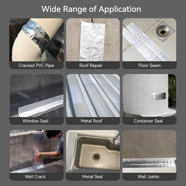 Se puede adherir a la mayoría de superficies, como vidrio, metal, plástico, madera, piedra y asfalto, y se puede usar como sello de agua y gas.
