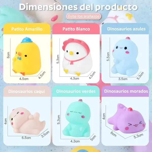 🧼 Flotan en el agua y ¡emiten un divertido sonido al apretarlos!