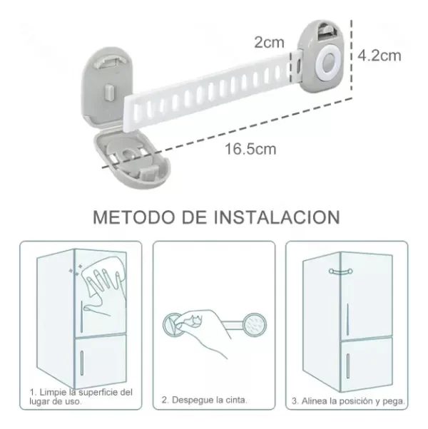 Este producto puede evitar que el bebé abra las puertas, dedos aplastados, artículos dañados o artículos en el gabinete que se lastimen al bebé