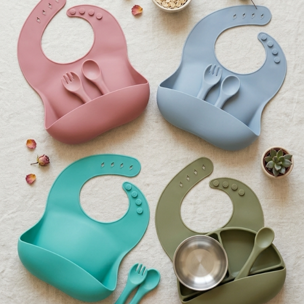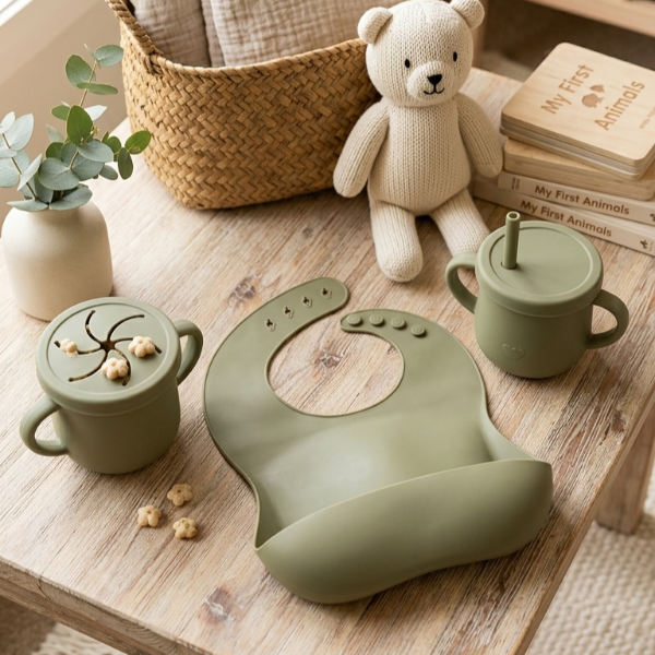 Babero + Vasito Con 2 Tapas (Tapa Con Sorbete + Tapa Para Alimentos)