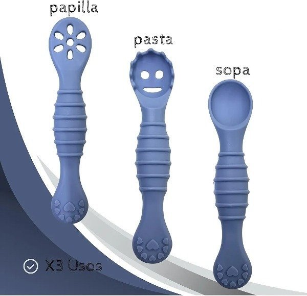 La forma de los mismos va a facilitar el agarre de alimentos blandos, papillas o pure, pastas y sopas.