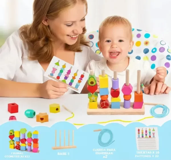 ¡Despierta la imaginación de tu peque con esta torre de encastre mas enhebrado!