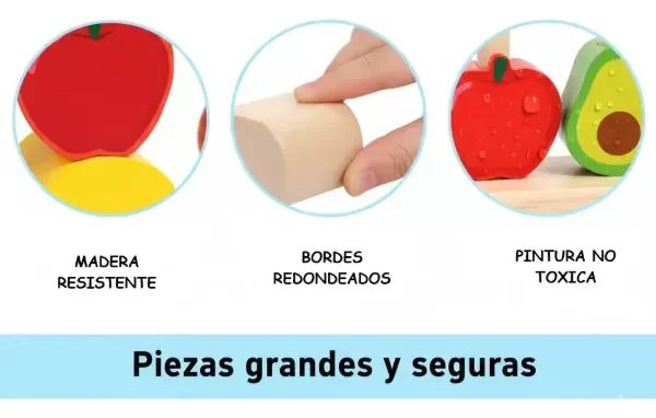 Piezas: 22 (frutas, formas geométricas, bloques, surtidas según diseño del juego)