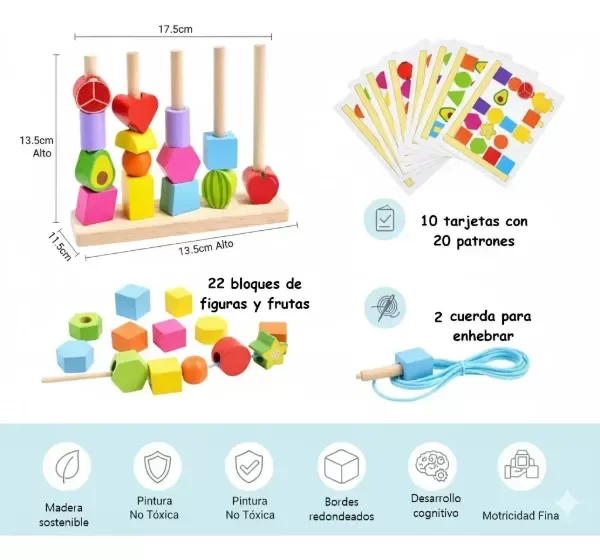 Desarrollo Integral Montessori: Estimula la concentración, creatividad y habilidades lingüísticas. ¡Tu peque resuelve problemas mientras arma su "ensalada geométrica" y la equilibra sin caídas!