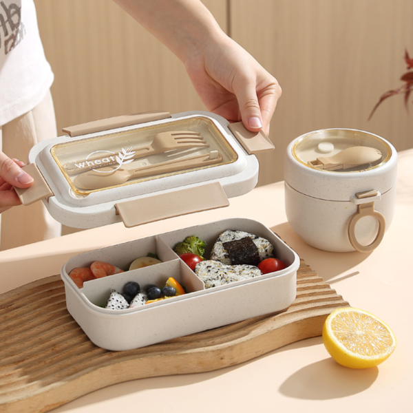 Cuenta con dos recipientes aptos microondas/lavavajillas y su bolso térmico que facilita su transportación. Incluye cubiertos.