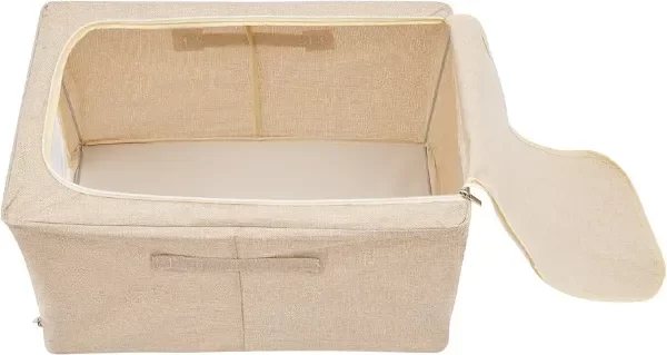Caja organizadora plegable de tela con interior metalico y doble cierre.