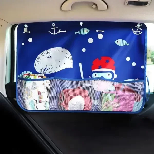 Cortina parasol para tu auto, para proteger del sol a los pequeños, y entretenerlos con sus dibujos animados.