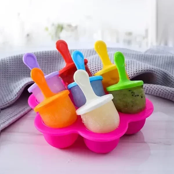 Molde para hacer 7 postrecitos helados con frutas, leche materna, de fórmula o con lo que consuman en casa