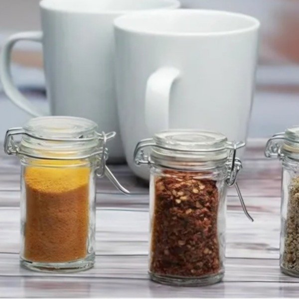 FRASCO ESPECIERO DE VIDRIO CON TAPA HERMETICA.