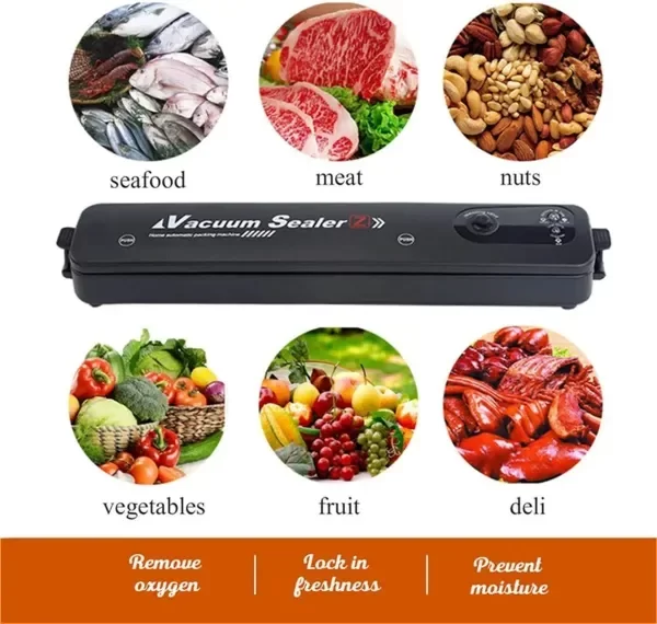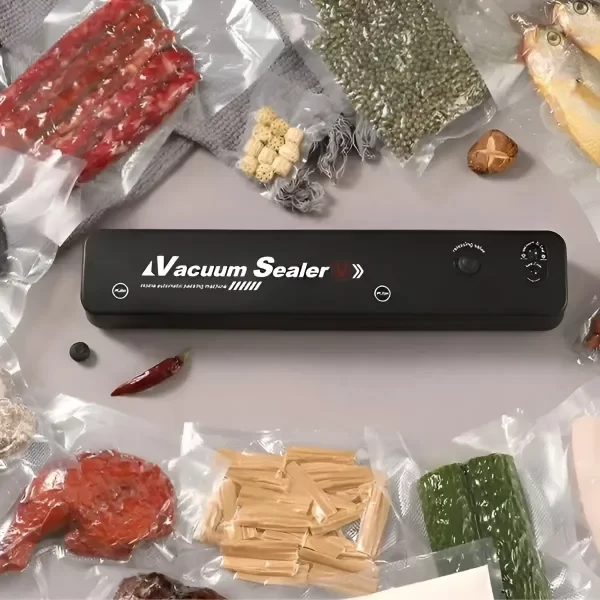 Cuenta con un sistema de sellado que aspira y sella, garantizando un vacío efectivo que mantiene tus alimentos frescos por más tiempo. Utiliza bolsas especificas para dicha función (incluye 9 unidades 16x25)