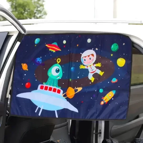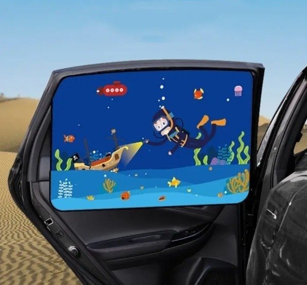 Cortina parasol para tu auto, para proteger del sol a los pequeños, y entretenerlos con sus dibujos animados.