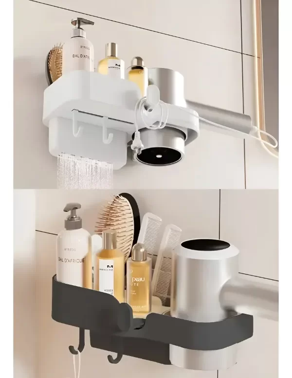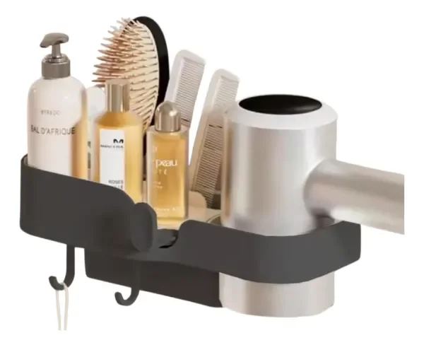 Organizador de Baño con Soporte Secador y Ganchos