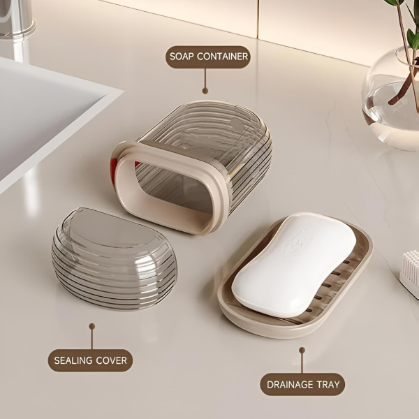 Cada jabonera posee una bandeja con sistema de drenaje, un estuche para trasportar y un cierre a prueba de fugas. Ideal para llevar en viajes
