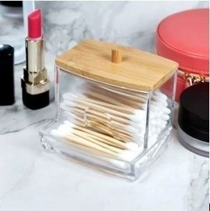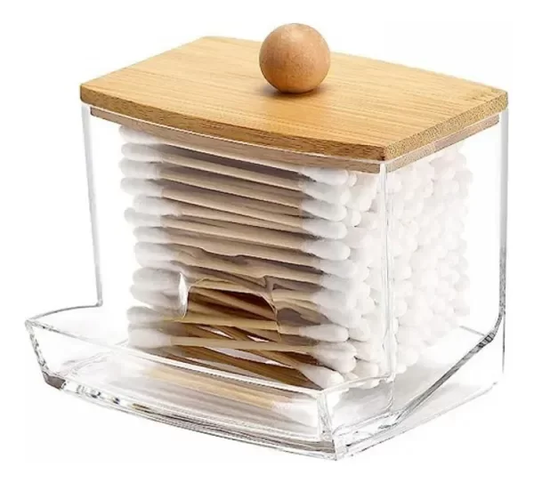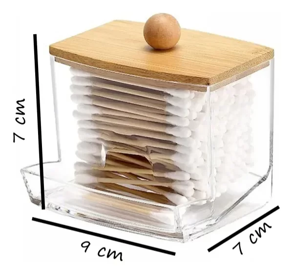 Este Organizador está hecho de acrílico con tapa de bambú ideal para hisopos de algodón estilo Nórdico.